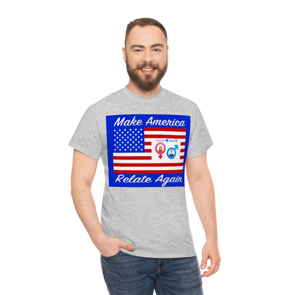 Make America Relate Again T-Shirts. This unisex heavy cotton tee is the basic staple of any wardrobe. It is the foundation upon which casual fashion grows. All it needs is a personalized design to elevate things to profitability. The specially spun fibers provide a smooth surface for premium printing vividity and sharpness. No side seams mean there are no itchy interruptions under the arms. The shoulders have tape for improved durability.